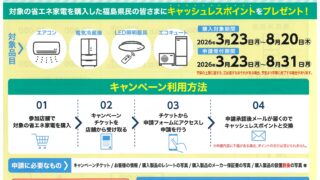 2026年3月23日より、福島県在住の方を対象にした「福島省エネ家電購入応援キャンペーン」がスタートします。